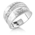 14 karat yellow gold matte and hammered-finish ring enhanced with 0 20 carat of white gold pave set diamonds