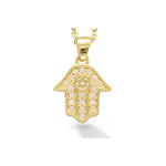 14 karat yellow gold polish-finish hand of god chamsa pendant centered with a star of david and enhanced with 0 25 carat of pave set diamonds 15hx12w mm
