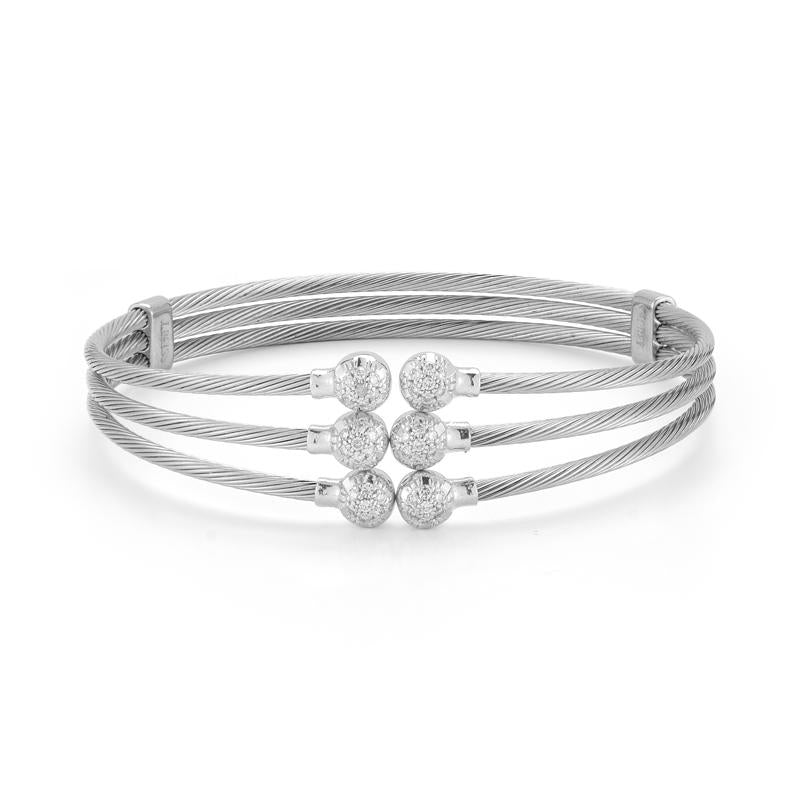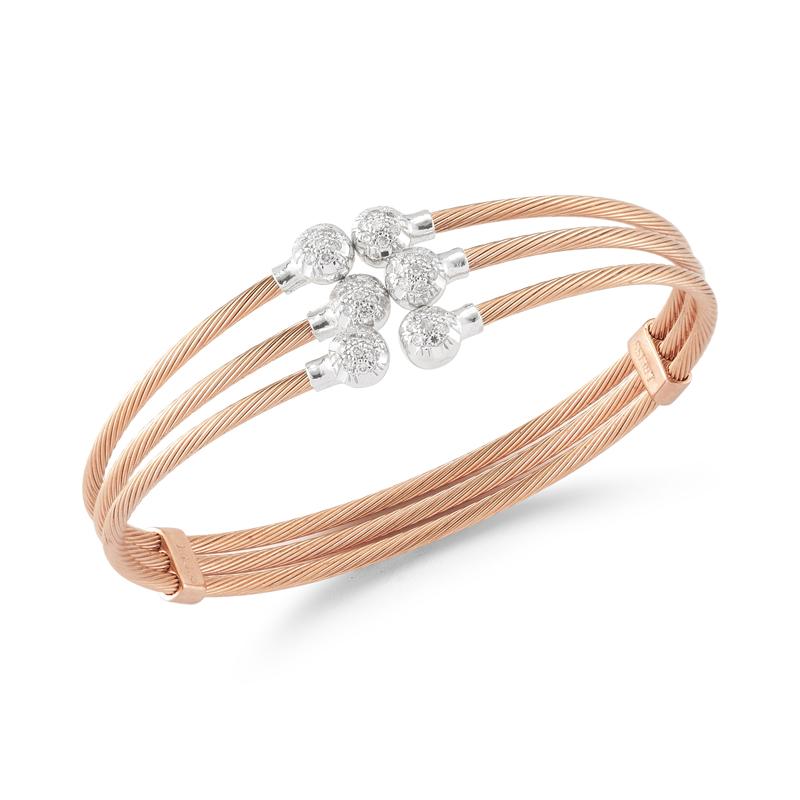 14 karat rose gold multi-strand wire bracelet accented with 0 40 carats of pave set diamonds