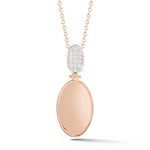 14 karat yellow gold polish-finished drop oval pendant enhanced with 0 14carats of pave set diamonds sliding on a 16 rolo chain