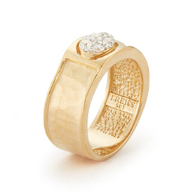 14 karat yellow gold polish-finished ring centered with 0 25 carats of pave set diamond oval