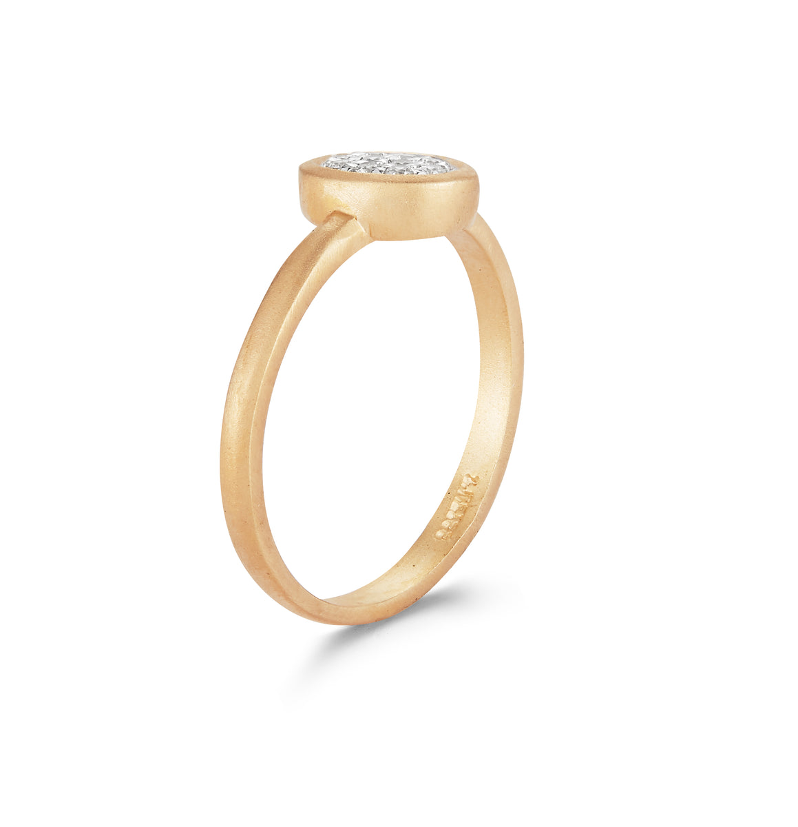 14 karat yellow gold matte-finish oval-shaped ring centered with 0 13 carats of pave set diamonds