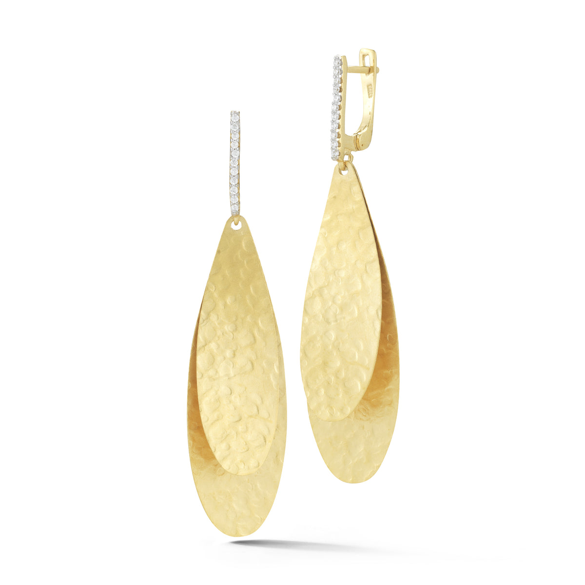 14 karat yellow gold matte and hammered-finish petal earrings accented with 0 15 carats of pave set diamonds