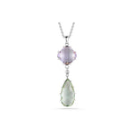 14 karat yellow gold polish-finish pendant dangling with amethyst and green amethyst semi-precious color stones and accented with 0 02 carat of bezel set diamonds