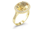 14 karat yellow gold polished-finish ring, centered with a 10x14mm semi-precious citrine color stone, and enhanced with 0.45 carat of pave set diamonds