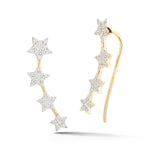 14 karat yellow gold matte-finished climber earrings enhanced with 0 60 carats of pave set diamond stars